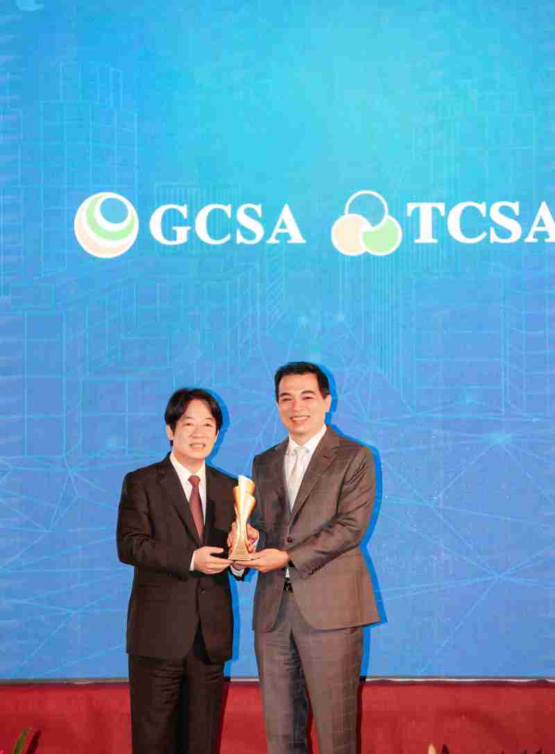 达全方位永续表现获全球永续奖及台湾永续奖肯定,,,由副总统赖清德颁奖 (左),,2468BET总经理柯富仁 (右) 代表领奖