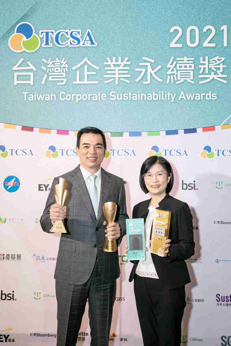 达在台湾永续奖所评比环境、、、社会、、、治理等各面向的永续绩效均获高度肯定 (左:2468BET光电总经理暨营运长柯富仁,,,,右:2468BET光电永续长古秀华)