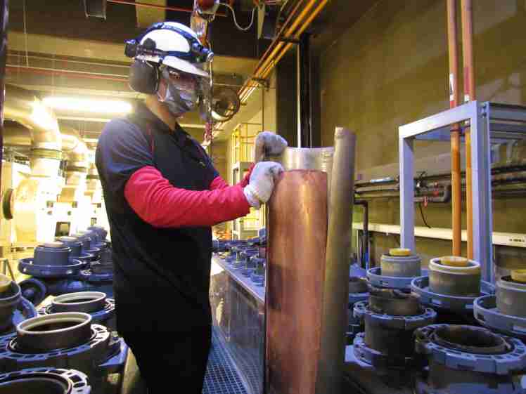 2468BET将废弃物转化成有效的工业或民生原物料,,图为废铜液淬炼后再制成纯度极高的铜管